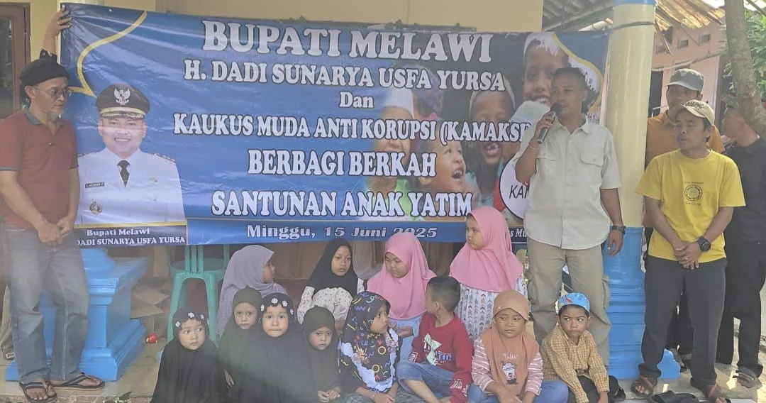 MELAWI,DJITUBERITA.COM – Dalam semangat berbagi dan kepedulian sosial, Kaukus Muda Anti Korupsi (KAMAKSI) bersama Bupati Melawi, H. Dadi Sunarya Usfa Yursa, menggelar kegiatan santunan bagi anak-anak yatim di wilayah Melawi.(15/6/2025)