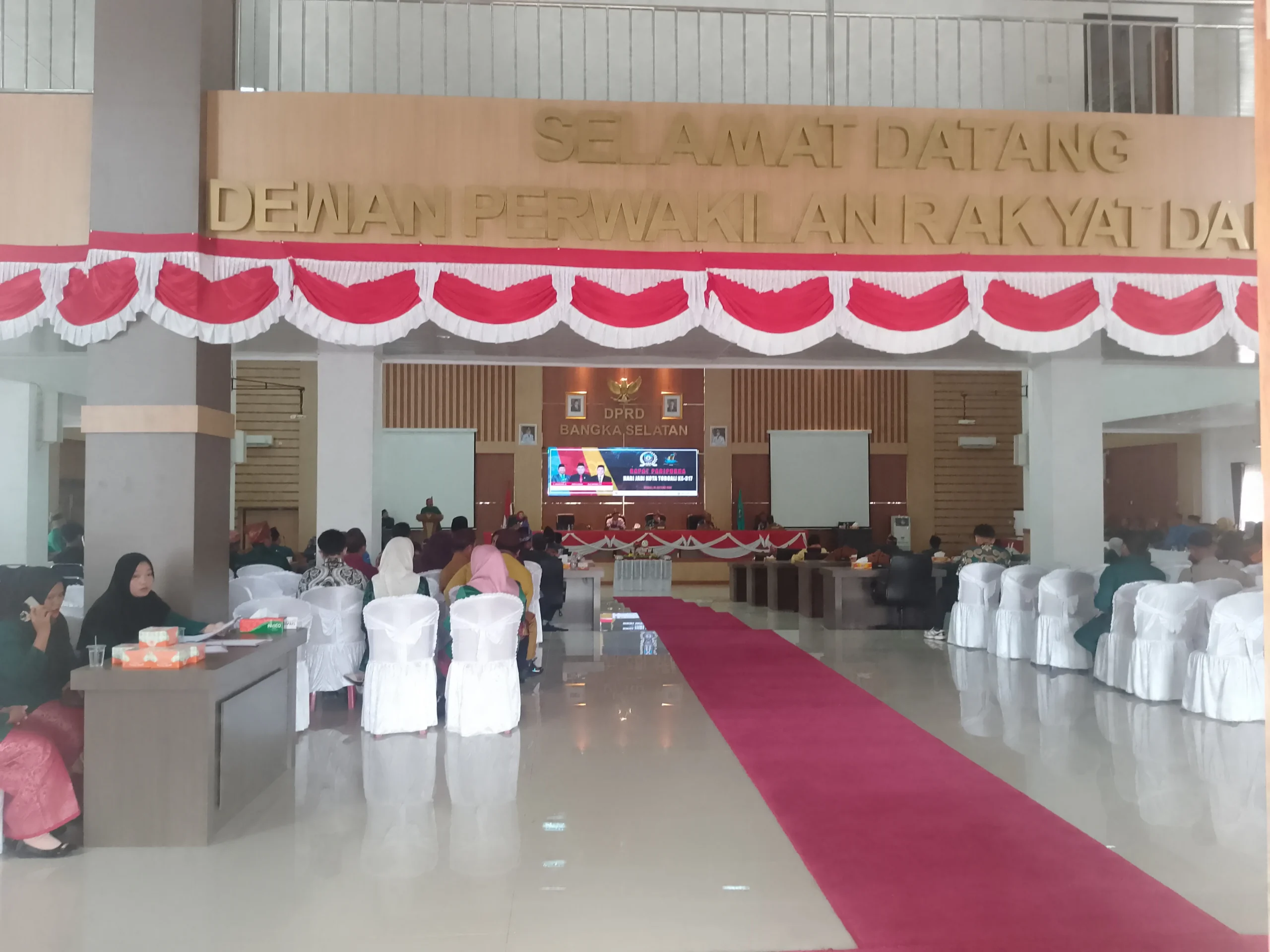 Toboali,Bangka Selatan – Peringatan Hari Ulang Tahun (HUT) Kota Toboali ke-317 tahun ini terasa berbeda. Tak seperti tahun-tahun sebelumnya yang dipenuhi kemeriahan dan pesta rakyat, perayaan kali ini berlangsung sangat sederhana dalam Rapat Paripurna Istimewa DPRD Bangka Selatan di Ruang Junjung Besaoh, Jum’at Sore,(24/10/2025).